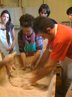 Nos mostró el molino que ellos utilizan que es eléctrico pero que está alimentado con energía solar. Después estuvimos debatiendo si a la harina para hacer pan se le debía eliminar la parte externa (el salvado) o no. ¿harina 100% integral o sólo semi-integral?