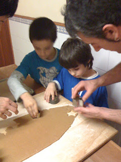 También hicimos unas galletas con harina, mantequilla, huevos de caserío y azúcar moreno. Aquí los que mejor se lo pasaron fueron los niños cortando galletas y llenando bandejas y bandejas.