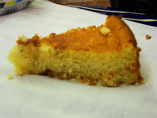 Lo prometido es deuda y aquí traigo las fotos y la crítica del cake-bizcocho. El público ha dado su más que visto bueno y a todos nos ha parecido buenísimo. Esponjoso, suave, jugoso, con el aroma de limón (y eso que el yogur que le puse era un yogur desnatado de melocotón con trocitos, je, je, je). La foto de la miga no me ha salido todo lo bien que me hubiese gustado pero ¿os hacéis una idea de lo rico que estaba?