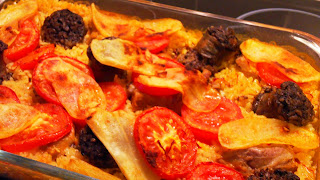 EliminarA este plato lo llaman arros de puchero o arros al forn. Como dije antes, es un arroz que se hace con las sobras del cocido. Yo lo hago directamente con costillas de cerdo y morcilla de burgos.