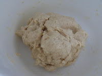 En un bol añadir todos los ingredientes menos la leche que iremos añadiendo poco a poco a medida que vamos mezclando los ingredientes, observando la consistencia de la masa. Obtendremos una masa no demasiado húmeda. Si es necesario no añadir toda la leche, no hacerlo y, si véis que es necesaria más cantidad, id añadiéndola poco a poco. La dejaremos unos 5 minutos reposando antes de comenzar a amasar.