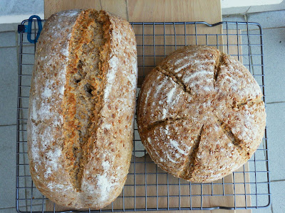 Esta semana se me han acumulado muchos acontecimientos. A veces tengo la sensación de que tantas obligaciones no me permiten disfrutar de la cocina ni del pan. Llevaba varias semanas con estrés "mental" pensando en qué momento me iba a poder poner a "resucitar" a mis dos pobres masas madres (trigo blanco y centeno semi-integral) para desarrollar todas las ideas de panes que se me van ocurriendo con el tiempo. La verdad es que, en tres semanas, no he podido hacer ningún tipo de pan y ya tenía ganas, ya...