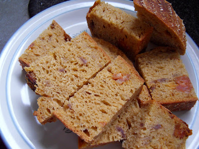 Teba tenia pendiente dejarte el comentario acerca de este pan. Lo he hecho sin chistorra porque pensé que igual era un pan demasiado potente de sabor para el uso que iba a darle. El resultado ha sido espectacular y nos ha gustado mucho. Voy a hacer una prueba bajando la cantidad de txakinarto para que se equilibren los sabores del maíz y la cebolla.
