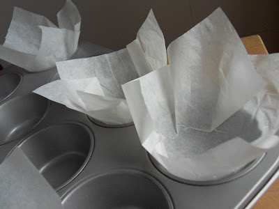 Preparamos los moldes. Se pueden elaborar moldecitos con papel de hornear. Si no, untamos de mantequilla y enharinamos.