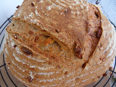 Receta basada en la receta "Pan blanco con castañas ralladas" del libro "Hecho a mano" de Dan Lepard (página 163) y con unos pequeños cambios para hacerlo semi-integral y elaborado únicamente con masa madre.