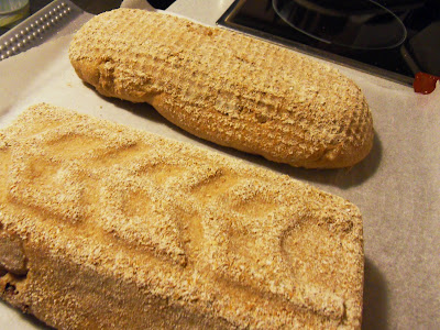 Los greñamos y los introducimos al horno a 220º C con vapor (bandeja metálica en el fondo del horno y a la que echamos medio vaso de agua caliente al introducir los panes). Ayudamos a crear más vapor con ayuda de un spray con agua pulverizada hacia las paredes del horno. El tiempo total de horneado es de unos 50 minutos.