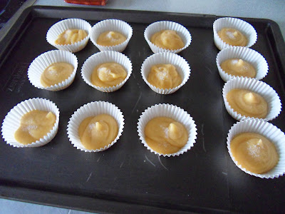 Precalentar el horno a 180º C. Preparar los moldecitos de papel sobre una fuente de horno.