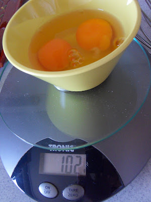 - el peso de los 2 huevos en mantequilla derretida (100 g)