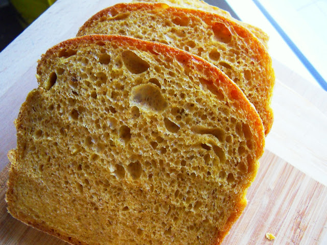 Tenía una receta de pan de calabaza que encontré en este enlace. Y también calabaza de la cesta de verduras ecológicas de la semana pasada. Ayer domingo además, hacía un día de perros y como soy bastante terca y se me había metido en el melón que de esta semana no pasaba que hacía este pan, pues aquí estoy.
