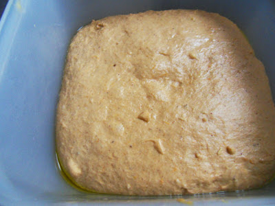 Cuando he visto que la masa ya no estaba demasiado pegajosa la he metido en un bol aceitado y la he dejado 1 hora a 25º C.