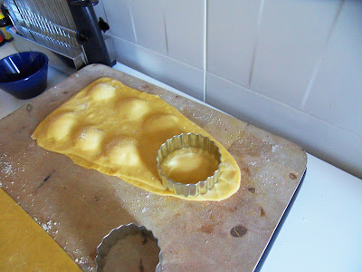 La pasta sobrante la seguimos estirando para hacer más raviolis.
