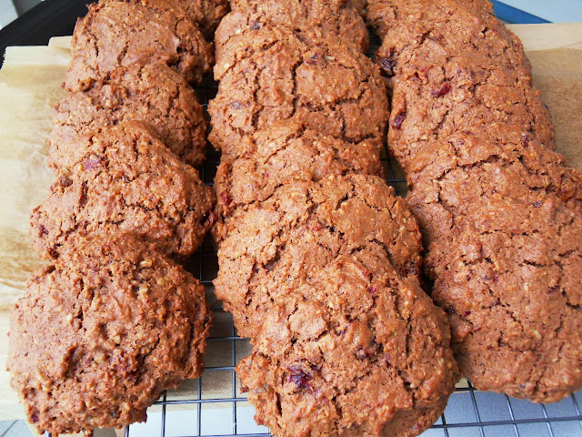 Nota sobre los ingredientes: la receta original lleva 250 g de leche que yo no puse y sustituí la piel confitada de naranja y limón por arándanos rojos y papaya desecados.