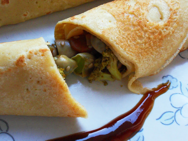 Crepes rellenas de salteado de verduras