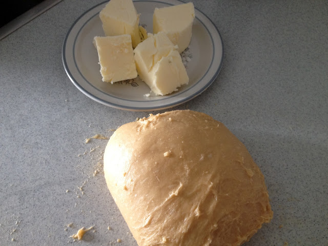 Terminé tarde y eran las 22:00 horas. Esta masa hizo un reposo en la nevera hasta el día siguiente a las 15:00 horas y después la saqué de la nevera y la tuve 3 horas a 28º C.