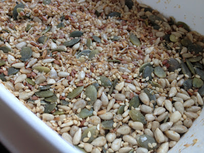 He tostado las pipas de girasol en una sartén con 1 cucharada de aceite. Una vez han cogido color las he dejado que se enfríen.