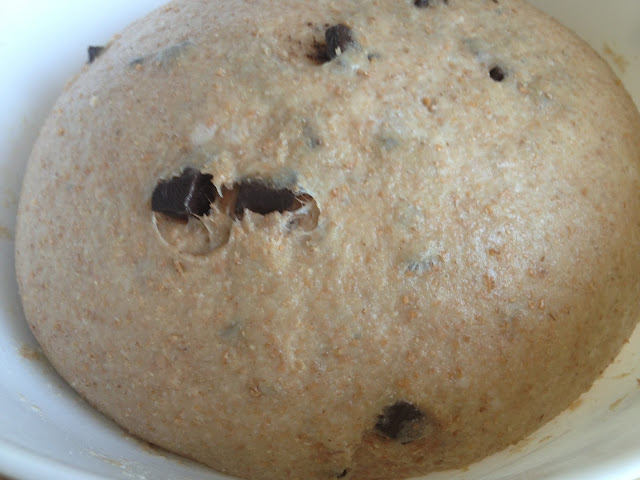 Luego he incorporado los trocitos de chocolate en otras dos tandas de amasado con refrigeración entre amasados incluida. Buenas noticias: a pesar de ser una masa pegajosa se amasa bastante bien con ayuda del aceite y ¡¡el chocolate no se ha deshecho!!