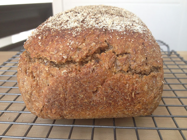 A pesar de su apariencia de mazacote es un pan rico y fácil de comer. No es tan "denso" como se ve en las fotos. Es un pan 100% integral y con grano completo en forma de centeno troceado (en alemán Schrot). Muy saludable y muy recomendable.