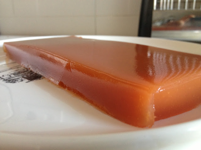 Vertemos en moldes. Yo reciclé los moldes que utilicé para hacer el membrillo (les pasé un pañito húmedo y listos). Van de coña porque no se pega nada y se desmoldan de ma-ra-vi-lla. De hecho, los he vuelto a reutilizar para hacer dulce de manzana, je, je, je.
