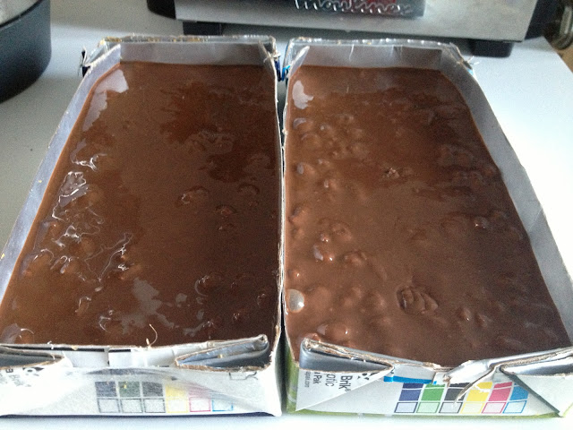 Hacer este turrón es una operación sumamente sencilla. En un cazo a fuego muy suave (si tenéis termómetro, que alcance como máximo 50º C) derretimos la ralladura de chocolates. Cuando ya esté fundido, lo sacamos del fuego y añadimos la manteca de cerdo y removemos bien para que se integre completamente. Finalmente y también fuera del fuego añadís los kikos trituraditos y mezcláis.