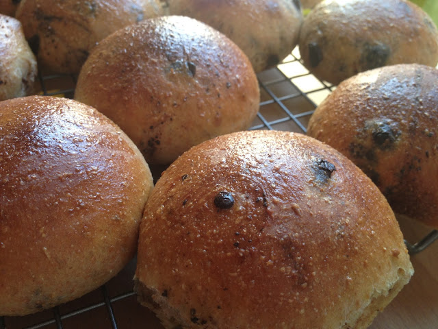Tiempo total de horneado: 30 minutos. Los primeros 14 minutos con el horno a tope. Después he bajado la temperatura a 200º C y así han estado otros 16 minutos. He apagado el horno y las he dejado 10 minutos con el horno apagado.