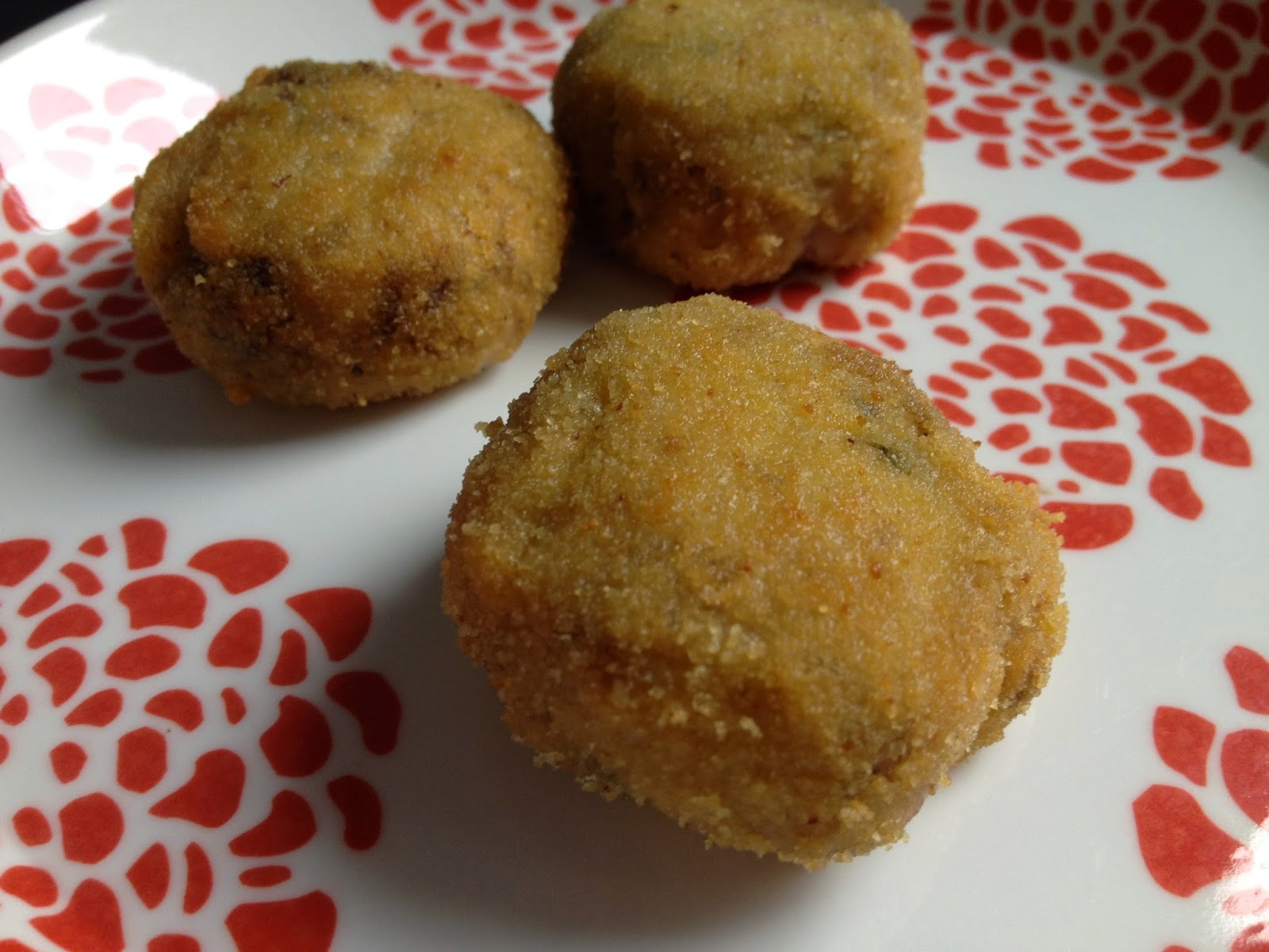 Se pueden freír inmediatamente, refrigerar o congelar. Doy fé de que este sistema de rebozado funciona y es el que seguiré de ahora en adelante porque manché muy poco, las hice rapidísimo y he gastado menores cantidades de harina, huevo y pan rallado que con otros sistemas.