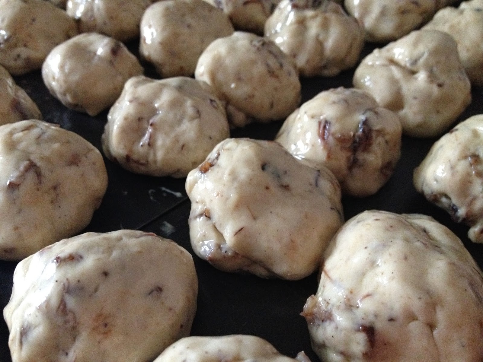 | Aspecto de la masa tras haberse enfriado toda la noche en nevera |
