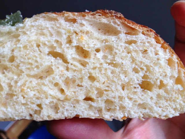 Después de varias pruebas este año, ésta es la fórmula definitiva. Quería conseguir un híbrido con masa madre natural y levadura fresca de panadería: un equilibrio entre el sabor, los matices y la conservación que aporta la masa madre y la esponjosidad que le da la levadura fresca. Y el resultado a la vista está. Ha quedado tan esponjoso y tan bueno que éste no va a llegar al lunes. Andan los roedores muy rápidos esta tarde y la última vez que he mirado ya faltaba la mitad.