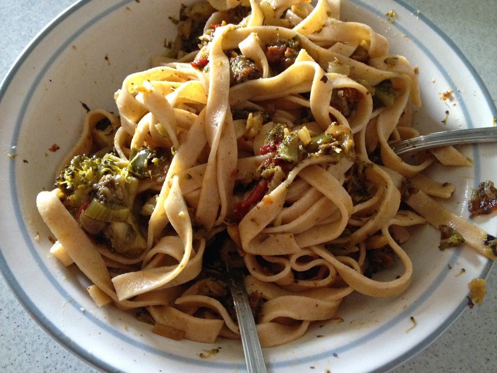 Pasta fresca 100% espelta (semi-integral) con sofrito de verduras