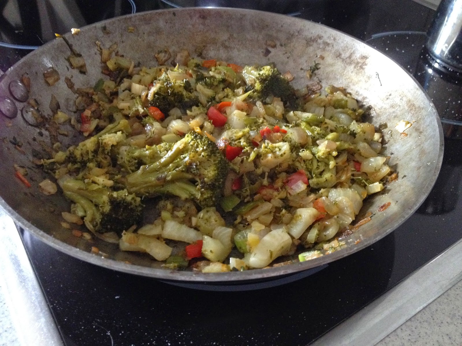 Con las verduras es cuestión de echarle ingenio o darle al buscador de google a ver qué encuentras por ahí con los ingredientes de los que dispones. No es que me invente las recetas, es que la cesta de verduras semanal te "obliga" a discurrir a base de bien y en casa la política es la de "cocina de aprovechamiento y reciclaje a tope". ¿Qué te sobran unas ramitas de brócoli cocido? Pues también las echas al sofrito. Esto es a lo que yo me refiero con lo de cocina de aprovechamiento ^_^