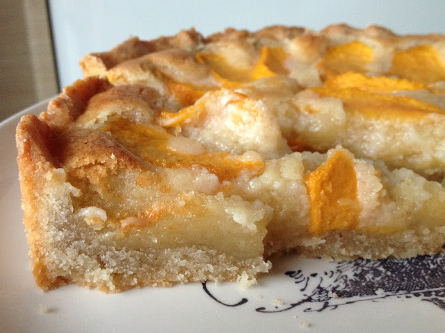 Crostata sin gluten con crema frangipane y melocotón amarillo
