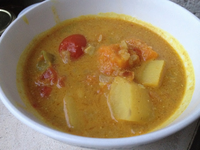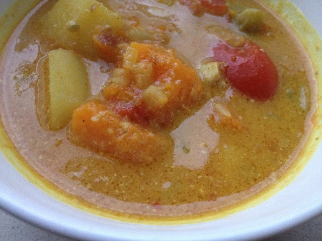 Ahora que llega el frío (por lo menos en el norte) ya apetecen platos calentitos para confortar el cuerpo. La autora de esta receta es Blissful Basil. Ella lo acompaña con arroz integral cocido. Yo, por comodidad he preferido añadir una patata para hacer el menú del "tuper" de mañana ya completo.
