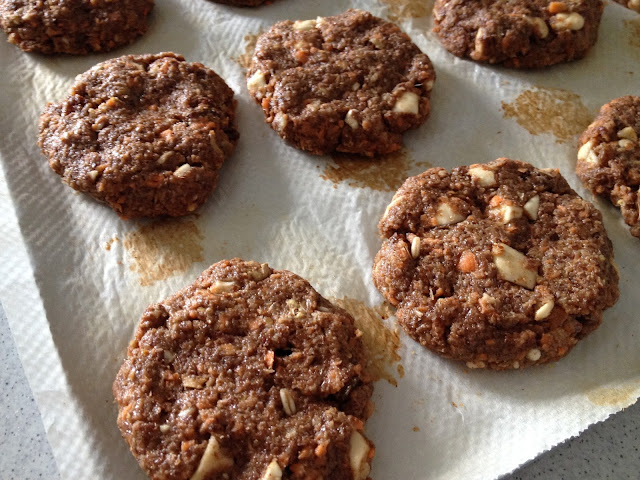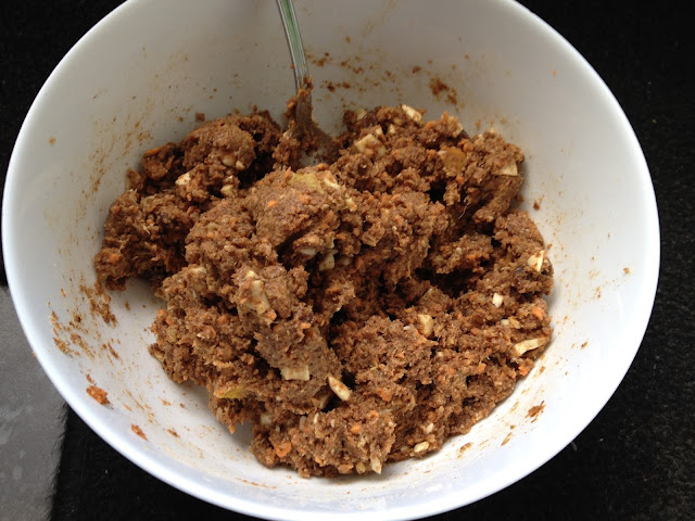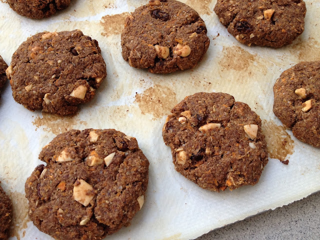 De nuevo he vuelto al blog de Oh she glows y he encontrado esta receta de mega-galletas de zanahoria de desayuno (mega carrot cake breakfast cookies), la cual he adaptado a mis ingredientes y a mis gustos personales para que además de no contener lácteos ni huevo, sea también una opción sin gluten. En la receta de Oh she glows la textura parece más seca que la que me ha salido en mis "galletas" versionadas, pero es porque en mi masa he añadido bagazo de avena en lugar de copos de avena y éste aporta más humedad. Por eso, he decidido cambiarles el nombre a mega-bizcochitos y os aseguro que su textura es una pasada.