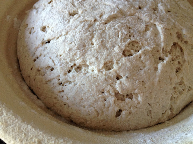 Primera fermentación: Una hora a temperatura ambiente y toda la noche en nevera en un recipiente hermético de plástico tapado. Mirad qué pinta tras haber fermentado toda la noche en frío :-D