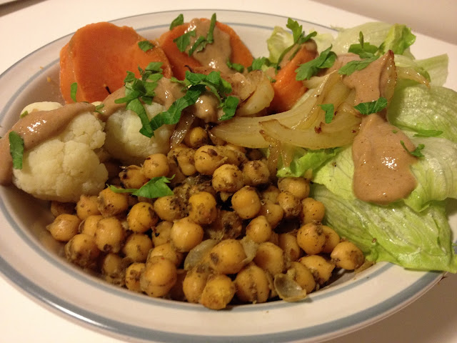 Ensalada de invierno con garbanzos especiados y verduras (sin gluten, receta vegana)