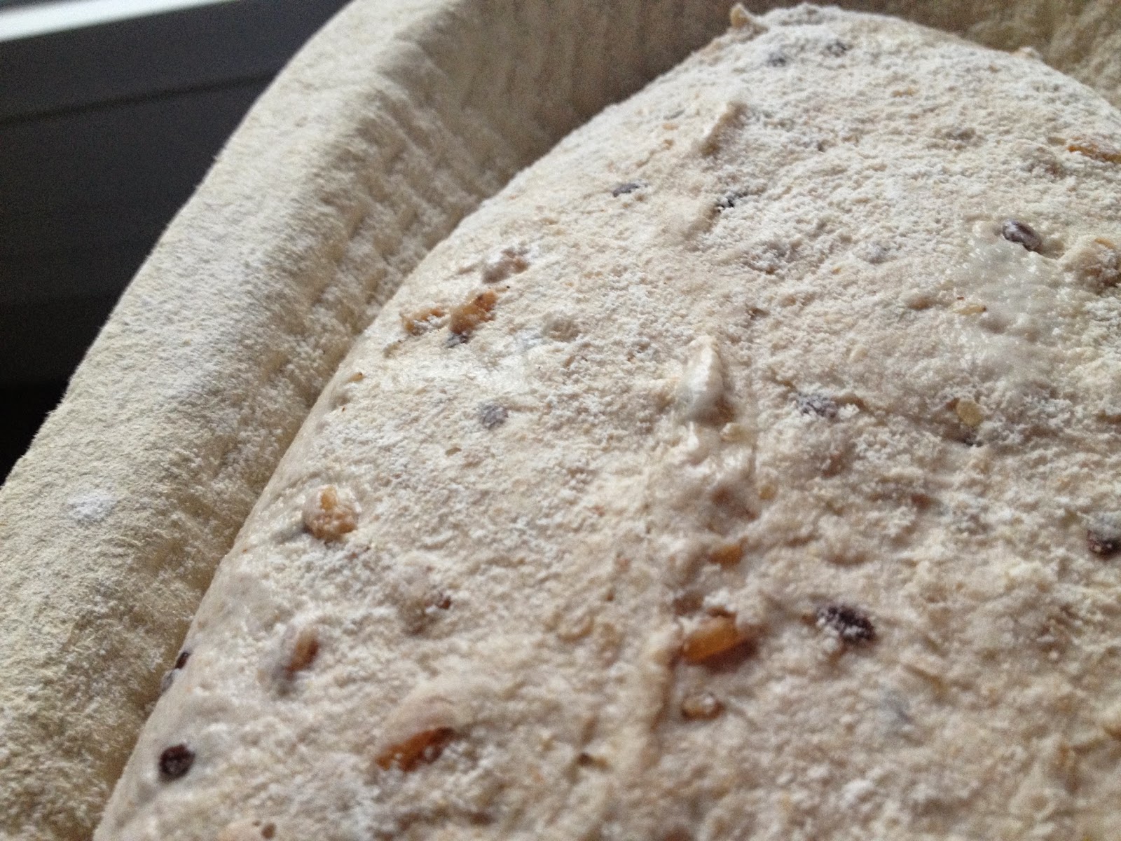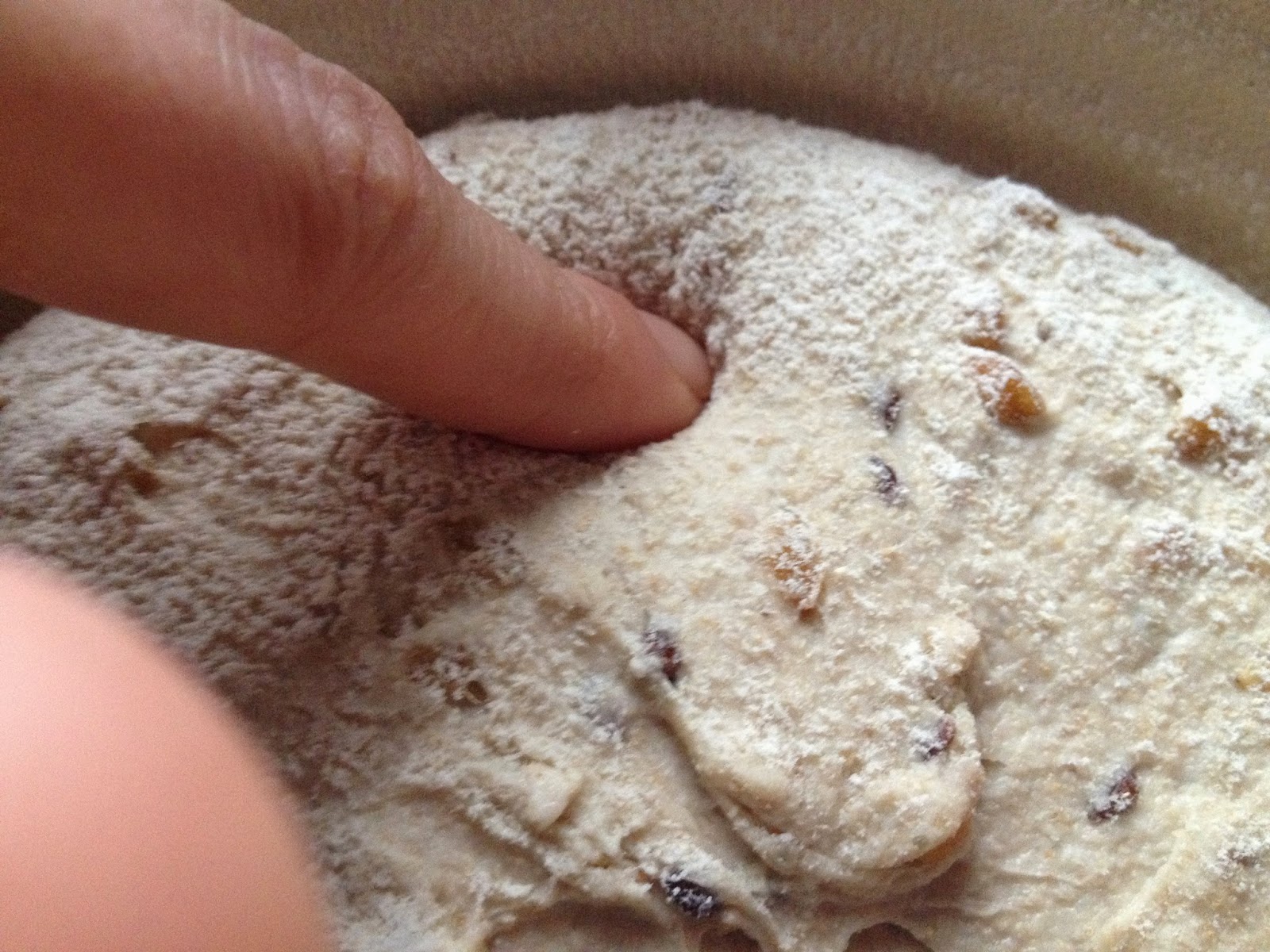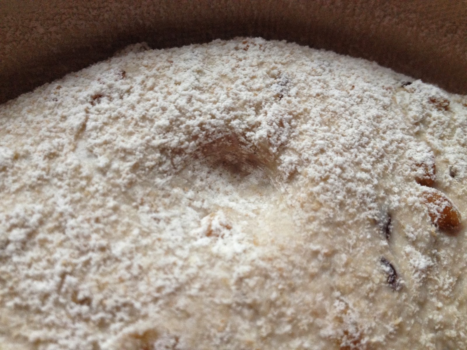 La masa se maneja muy bien sin ayuda de aceite extra. Habremos preparado un molde aceitado y enharinado. Dejaremos la masa en su interior fermentando hasta que doble el volumen tapada con film o un gorro de ducha. Con tan poquita cantidad de levadura tardará bastante. Os aconsejo meterla a la nevera tapada con film transparente y y dejarla toda la noche antes de hornearla.