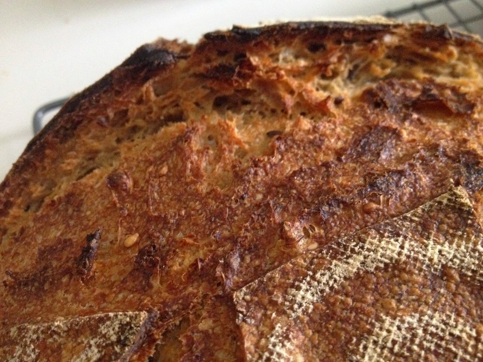 - sabor bueno, muy bueno sin que se note predominio ácido de la masa madre, aunque si le noto un punto de ácido que creo que es por el gasificante (que no me agrada especialmente, pero así es la experimentación). No tiene sabor dulce ni de la harina de castaña o del azúcar añadido.