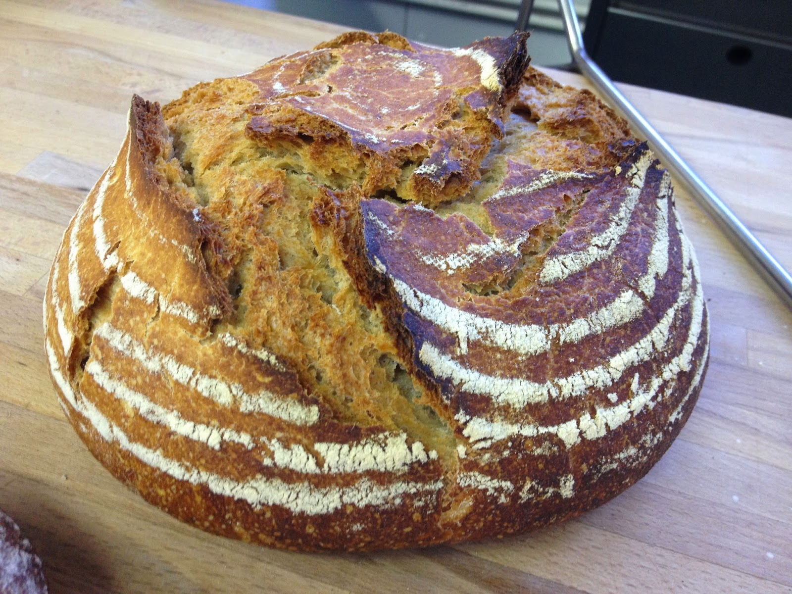 Los primeros 12 minutos con vapor y calor sólo desde abajo a 220º C. El resto del tiempo a 200º C con calor arriba y abajo.