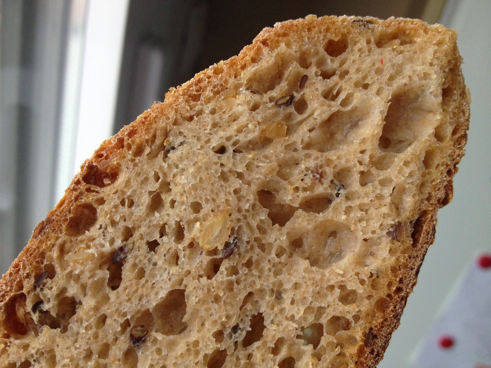 - miga espectacular no sólo de apariencia, sino también en su elasticidad. Tengo que buscar un molde menos largo para que la masa ocupe más altura y la rebanada de pan tenga más altura y luzca más.