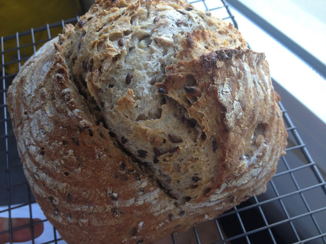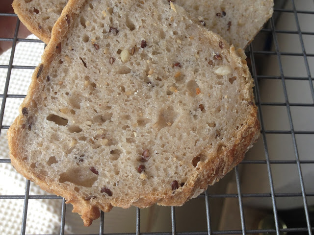 Este pan lleva como aglutinantes la pectina de manzana y la goma xantana. Está fermentado con masa madre de harina integral de arroz y, a pesar de la alta proporción de almidones, es un pan con mucho sabor gracias a la fermentación lenta con masa madre natural y al remojado de semillas (en inglés, soaker).