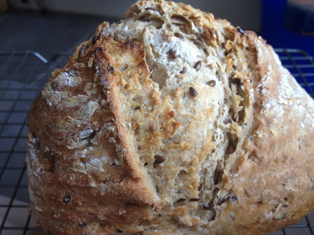 Sábado por la mañana tostamos las semillas en una sartén y las mezclamos con 63 g de agua. Tapamos con film transparente y dejamos hasta la hora de hacer el pan.