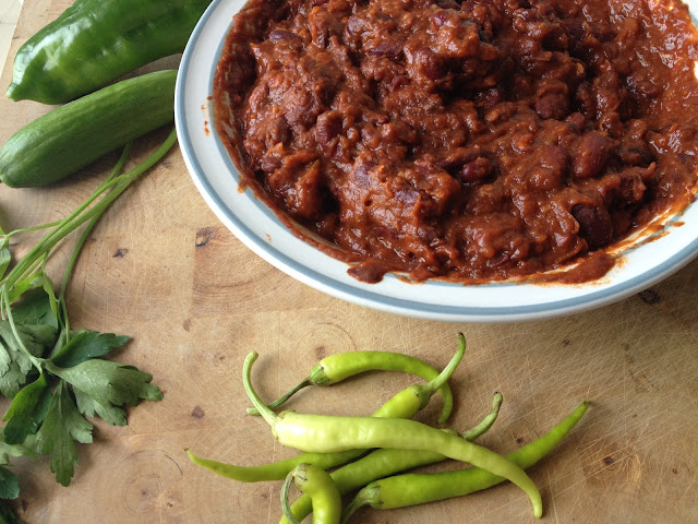 - 1 chile chipotle en remojo con agua templada o una guindilla en su defecto. Si la queréis muy picante, poned 4 chiles remojados o más guindilla.