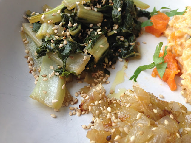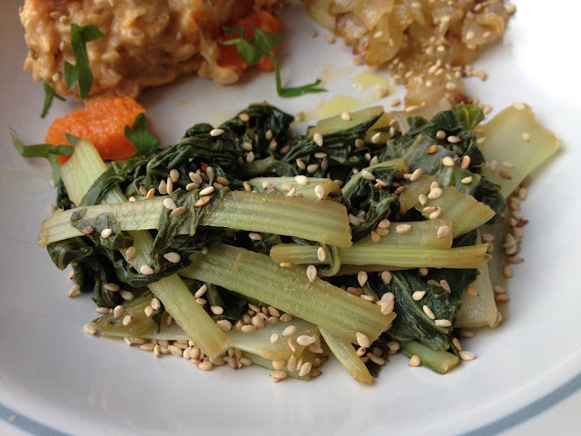 La receta original está sacada del libro "Veganomicon" de Isa Chandra y ¡mira tú por dónde! nos vale para el pak choi, una especie de col china que viene con bastante frecuencia en nuestra cesta de verduras. Tiene un sabor muy suave y las pencas son bastante más crujientes que las de las acelgas.