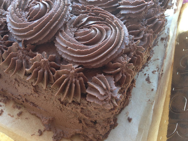 Ponemos la ganache encima de la base y la parte de arriba con la parte menos bonita hacia abajo sobre la ganache. Con el resto cubriremos la tarta con ayuda de una espátula o si tenemos buena mano, le podemos hacer unos detallitos con una manga pastelera. Yo me he inspirado en imágenes de internet y he usado este fantástico video para escoger el "diseño" de adornos de mi pastelón. Espero que os inspire también a todos vosotros.