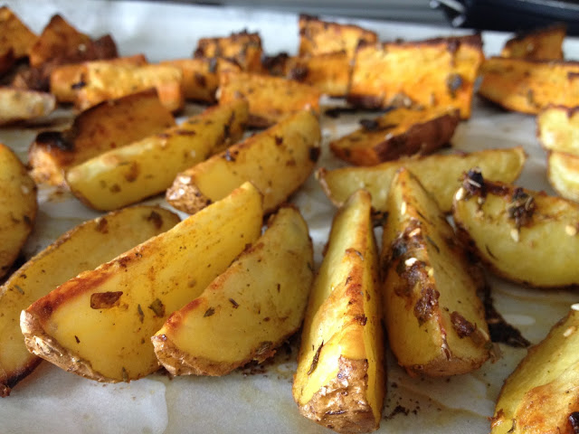 - 4 patatas del tamaño de un limón cortadas en gajos