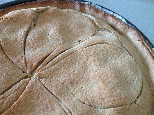 Se pinta con huevo batido (yo me he quedado sin huevos, ja, ja y no la he pintado) y con la punta de un cuchillo hacemos un rayado decorativo.