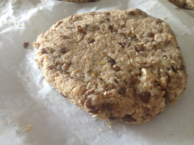 Formamos las hamburguesas. En mi caso la masa estaba muy blanda y las he formado con un aro de emplatar de acero inoxidable de 10 cm directamente sobre una bandeja de horno forrada de papel de hornear y alisando la masa con una cuchara.
